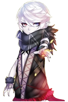 As Vandalieu, he was born with heterochromatic eyes[3] and skin as pale as candle wax. He has pointed ears which are hidden behind white, shaggy hair.[4] He has a natural poker-face, which makes it difficult to tell where he's looking or what he's thinking, unless one is very familiar with him. He's described as having a flat voice and lifeless eyes.[5]